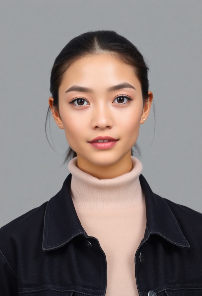 Create a hyper-realistic portrait of the same person as a human-dog hybrid, preserving facial identity, skin color, expression, pose, and framing. Blend dog traits into the human face: give the eyes a warm brown puppy-like quality, darken the nose tip slightly, introduce soft fur texture blending into the skin around the cheeks and jaw, and add rounded floppy ear shapes. Keep the original face shape and bone structure fully intact. The result should look like one unified creature — a person whose features have naturally merged with dog characteristics.