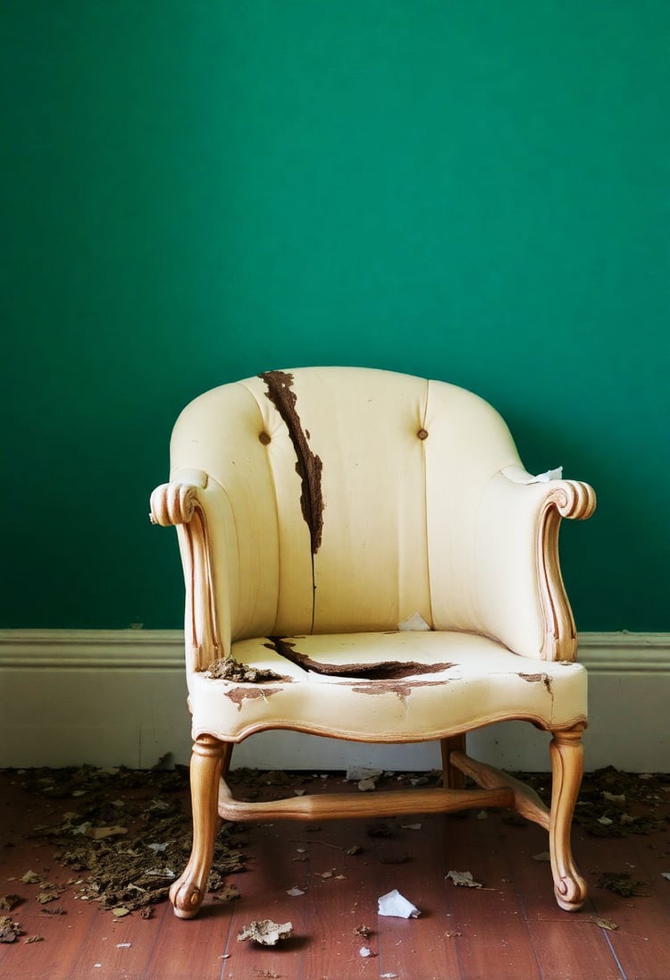 Restore and repair an old furniture photo using AI. Use the brush tool to clean and remove details from the photo and make the furniture look fresh again.