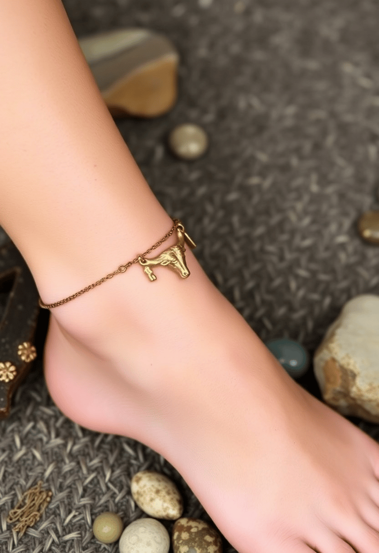An anklet adorned with small Taurus charms and earthy stones, symbolizing the deep connection Taurus has with nature.
